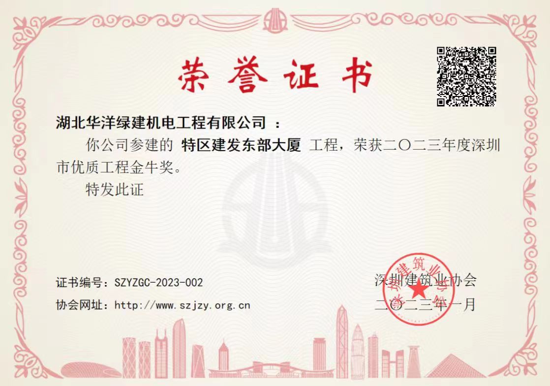 深圳特區(qū)建發(fā)東部大廈項目榮獲“深圳市優(yōu)質(zhì)工程金牛獎”